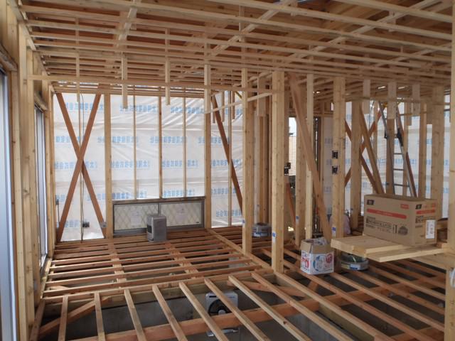 ☆先週の工事☆ 木工事(天井下地組み、軒天下地組み、軒天ボード貼り、他) 外壁下地シート貼り 内部電気配線・給排水配管 ☆今週の予定工事☆ 木工事(天井下地組み、軒天下地組み、軒天ボード貼り、他) 内部電気配線