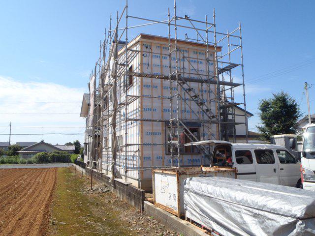 ☆先週の工事☆ 木工事(軒天下地組み及びの軒天ケイカル板貼り、2階天井 断熱入れ、及びボード貼り、他) ☆今週の予定工事☆ 木工事(1階天井ボード貼り、壁断熱材入れ・窓枠取付、他)