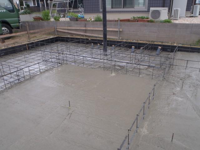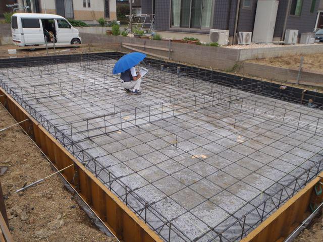 ☆先週の工事☆ 基礎工事(ベース型枠組み、鉄筋組み、ベースコンクリート打ち、他) JIO配筋検査 ☆今週の予定工事☆ 基礎工事(布基礎部型枠組立、アンカーボルト類設置、 コンクリート打ち、他)
