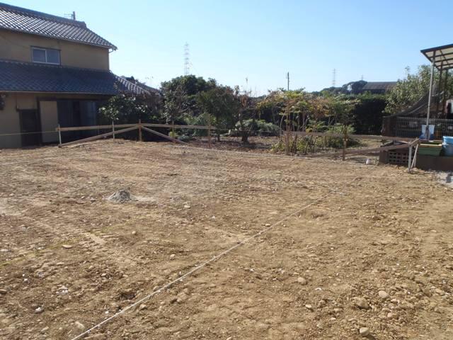 地鎮祭おめでとうございます。地盤調査の報告書より、しっかり と地盤強度が確認出来、基礎工事に着手しました、丁張り(基礎 の基準となる位置、高さ出し)を行い、掘削地業と進めています。