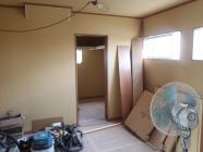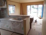 ・19日に1階システムキッチン据付完了、2階28日・29日据付予定 です。内部木工事、和室造作を完了し、カウンター材・笠木取付、 SIC棚類造作を進めています。2階勾配天井材が搬入され、 天井貼り、建具吊込みを予定しています。