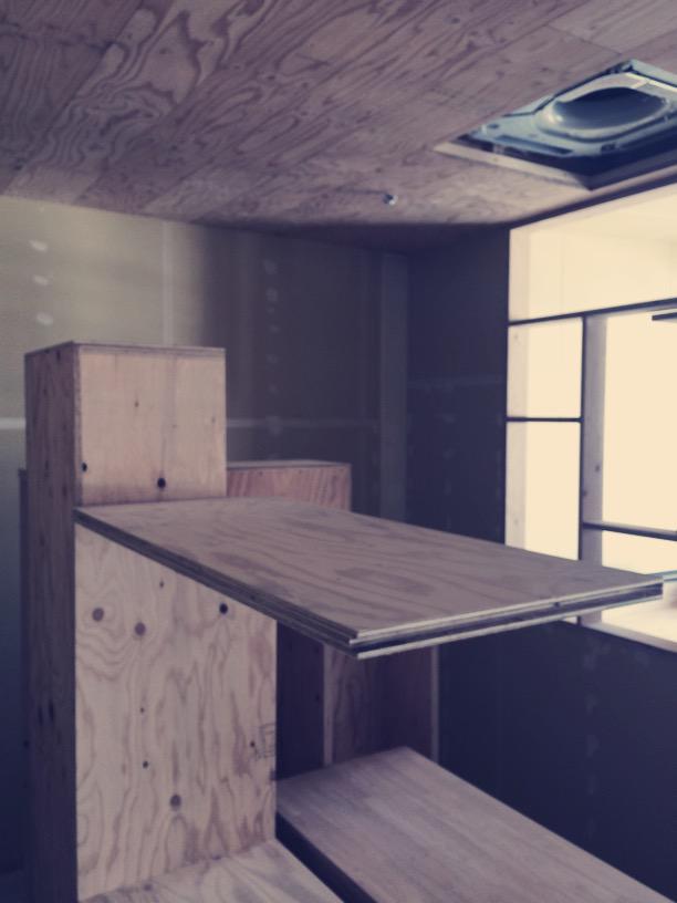先週の工事 ・大工造作工事(床貼り・天井化粧) ・電気工事(配線) ・建具工事 ・塗装工事(下地処理) 今週予定の工事 ・大工造作(間仕切り壁・化粧壁) ・塗装工事(パテかい) ・左官工事 ・設備工事(ガス管・ボイラー)