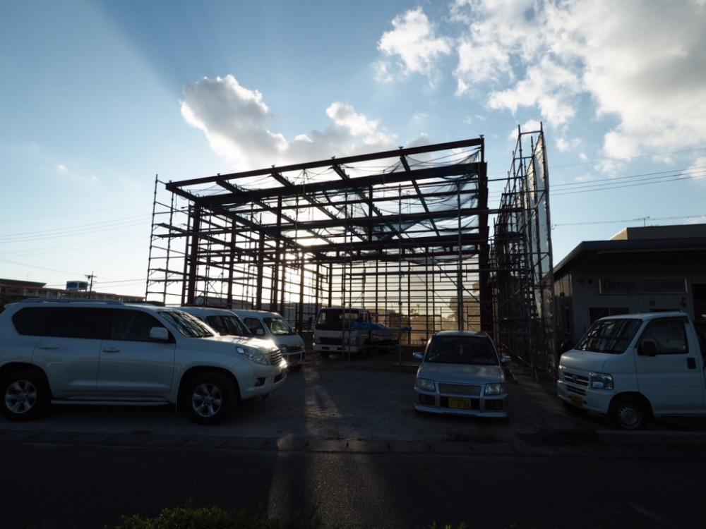 足場を組み立て鉄骨の上棟を行いました!一日でまるっと建物のスケールがでました。