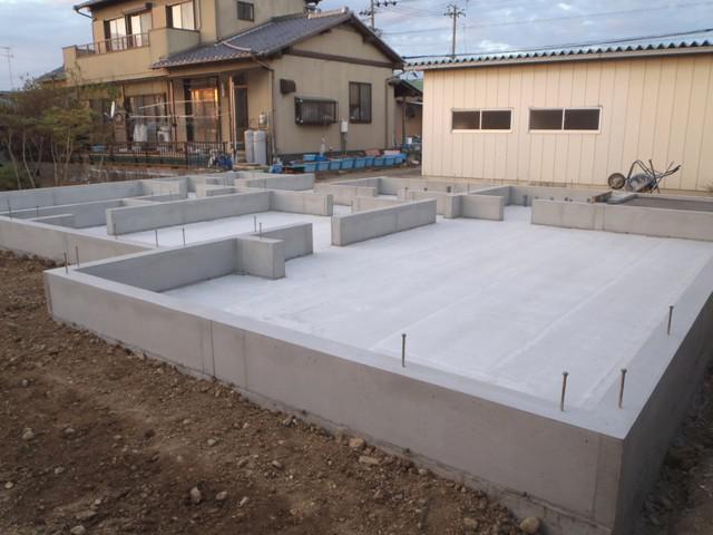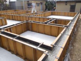 ・基礎工事、型枠解体、基礎廻り埋め戻し整地、ユニットバス下地 コンクリートの色が白くなり強度も出てきています。 ・来週半ばより、上棟準備に取り掛かり、土台据え・床下地 組み、柱・梁、下地木材搬入と進めています。