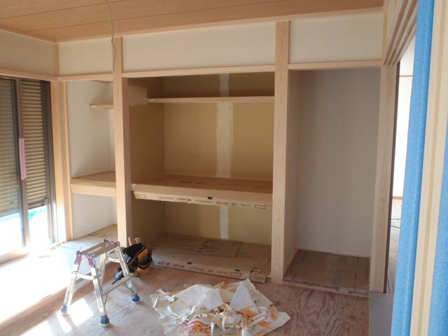☆先週の工事☆ 内装工事(クロス貼り、クッションシート貼り、他) 外部給排水、埋設 玄関・ポーチタイル下地 ☆今週の予定工事☆ 内装工事(クロス貼り、他) 笠木・カウンター塗装 衛生器具、電気プレート類取付