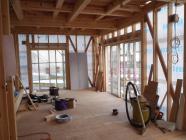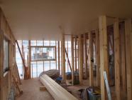 ・木工事、1階床断熱材入れ、下地合板本締め、2階天井下地 組み及び断熱材入れ、天井ボード貼りを行っています。 ・来週より、外壁下地木材取付・軒天下地組み及び軒天板材 貼りを予定していますが、雨の具合にて内部造作を進めます。