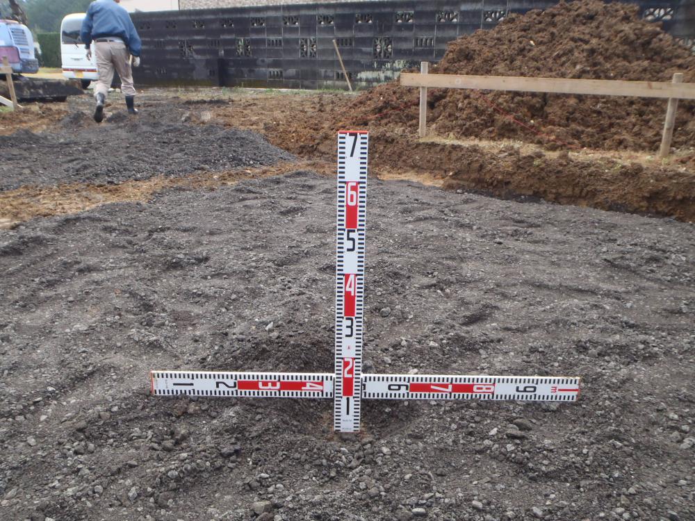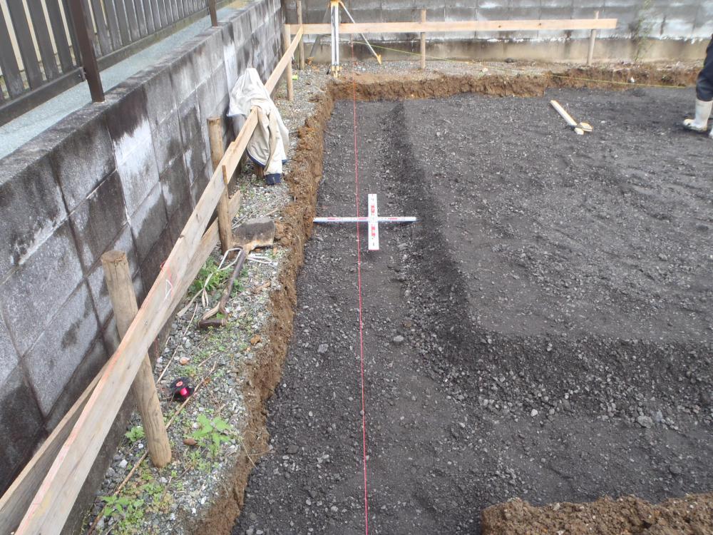 ・地鎮祭おめでとうございます。地盤調査の報告書より、 しっかりと地盤強度が確認出来き、基礎工事に着手しました。 ・丁張り(基礎の基準となる位置、高さ出し)を行い、掘削地業を 進めています。