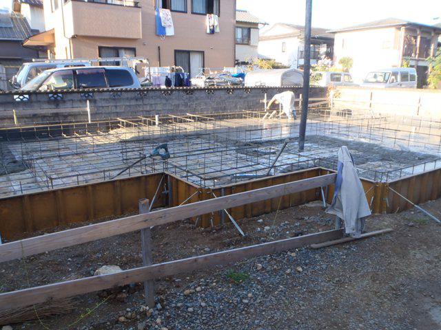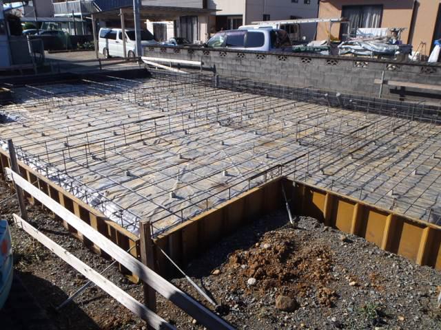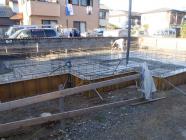 基礎工事(鉄筋組み、ベースコンクリートうち立ち上がり部型枠組み