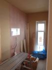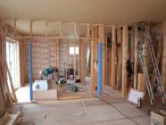 ・外壁サイディング貼りが完了し、コーキング打ちを進めています。 コーキング材、乾き次第、軒天塗装に入ります。 ・内部木工事、1階床フローリング貼りを進めながら壁下地 ボード及び下地合板貼りを進めています。