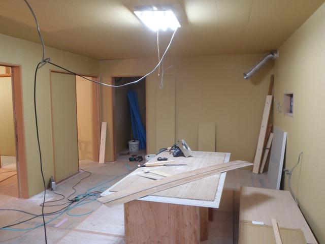 間仕切りられて、棚類取付、幅木・廻し縁取付と残すところ