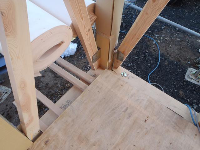 開口造作、防腐防蟻処理と進んでいます。構造検査後、外壁