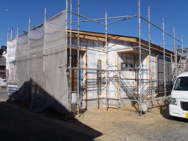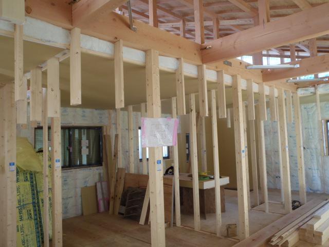 ☆先週の工事☆ 木工事(内部壁断熱材入れ、天井下地組み及び天井ボード 貼り、天井断熱材入れ、他) ☆今週の予定工事☆ 木工事(天井下地組み及び天井ボード貼り、軒天ボード貼り 窓枠取付、他) 内部電気配線・配管 保証機構JIO、外装下地検査
