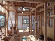 ・木工事、2階床下地材本締め、下地合板・下地プラスター ボード敷き込み、小屋裏床下地を行い、外壁下地材取付を 進めています。 ・棟梁20.21、上棟手伝いのため、現場を離れます。