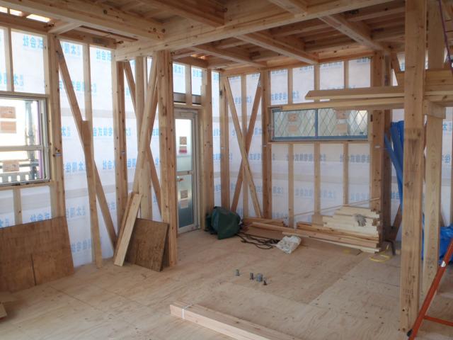 ☆先週の工事☆ 木工事(2階・小屋裏収納、床下地材本締め及び下地 合板貼り、外壁下地材取付、他) ☆今週の予定工事☆ 木工事(外壁下地材取付、軒天下地組み及び軒天ボード貼り 他)