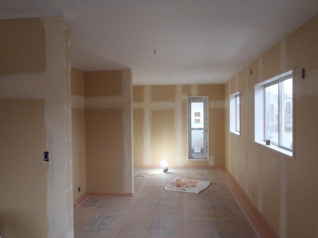 ☆先週の工事☆ 木工事(棚類取付、幅木・廻し縁取付、建具吊り込み、片付け 他) 内装工事(クロス下地、クロス貼り、クッションシート) 玄関・ポーチタイル工事 左官工事(勝手口、エコキュートベース、 基礎幅木) ☆今週の予定工事☆ 内装工事(クロス下地、クロス貼り、クッションシート) 衛生器具、電気器具取付け