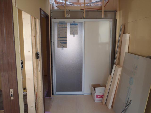 木工事(壁ボード・下地合板貼り、ドア開口枠取付、他)