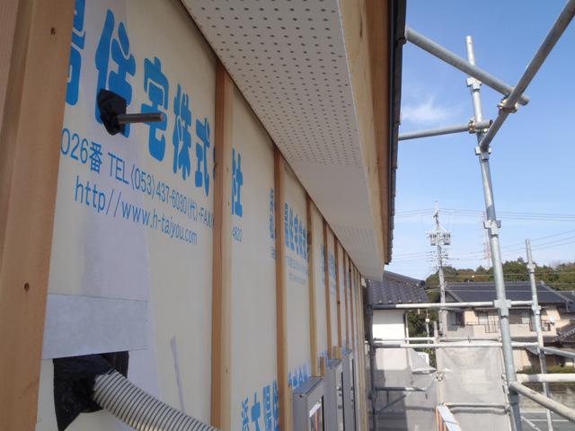 軒天下地組み、軒天ボード貼りと進め外部造作完了後、2階