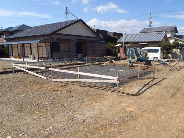 ・地鎮祭おめでとうございます。地盤調査の報告書より、 しっかりと地盤強度が確認出来き、基礎工事に着手しました。 ・丁張り(基礎の基準となる位置、高さ出し)を行い、掘削地業を 進めています。