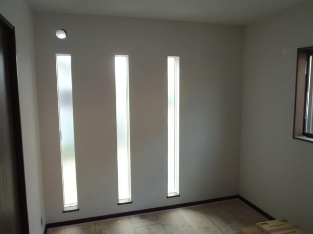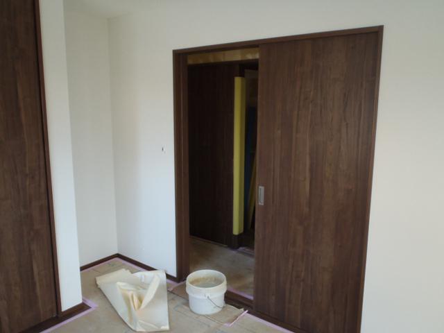 ・内装仕上げ工事、クロス下地を終え、天井・壁とクロス貼り が進み、工事の進みが一段と感じることが出来ます。 ・衛生器具、電気器具・プレート類取付を予定しています。 外部給排水・給湯管埋設も進めています