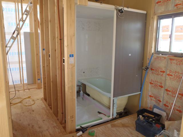 ☆先週の工事☆ 木工事(外壁下地材打ち、軒天下地、1階天井下地組み、他) 保証機構、外装下地検査 ユニットバス据え付け ☆今週の予定工事☆ 木工事(外壁下地材打ち、軒天下地及びケイカル板貼り、 窓枠取付、壁断熱材入れ、他)