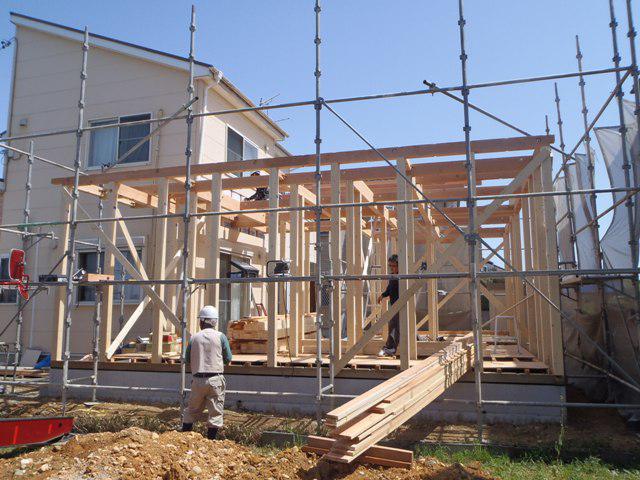 ☆先週の工事☆ 構造材・下地木材搬入、土台据え、床下地組み、上棟準備 足場組み 上棟 ☆今週の予定工事☆ 木工事(構造金物取付、1階床下地、外部造作、 窓開口造作、他)