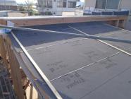 ・基礎工事が完了し、土台据え、床下地組みと上棟準備を終え 柱・梁組み、屋根下地組み及び下地防水ルフィーフィングを葺き 耐力壁となる筋カイ・間柱入れを行うことが出来ました。 構造金物取付、外部下地・窓開口造作、床下地本締めと進め ていきます。