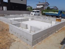 ・夏季休暇を頂きありがとうございました。 基礎廻り掘削部を埋め戻し整地し基礎工事が完了しました、 土台、床下地材が搬入され、土台据え、1階床下地組みと 上棟準備に取り掛かります。