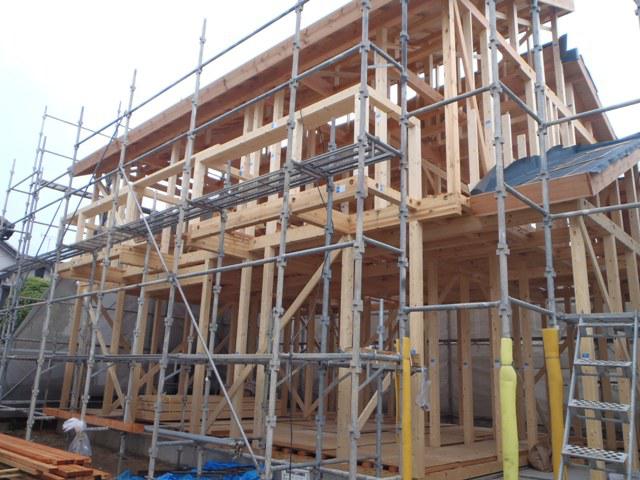 上棟 水道・下水取り出し工事 木工事(屋根下地、筋カイ