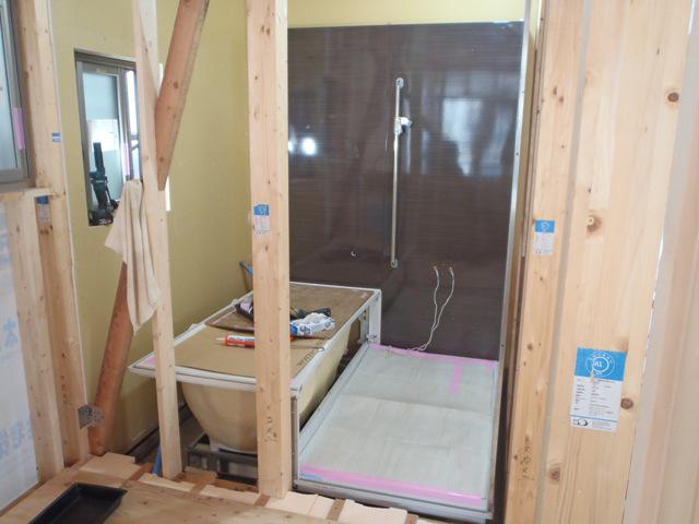 下地断熱材入れ、下地合板貼り、29日ユニットバス据付を