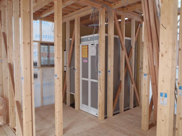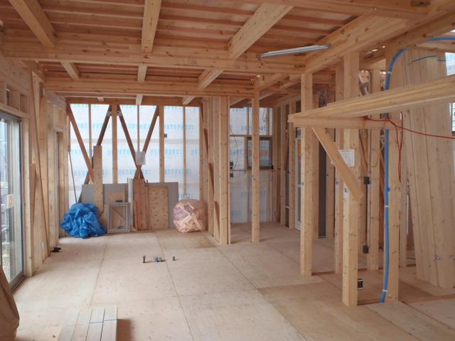 配線を終えた部屋より天井組みと外部・内部造作を行って