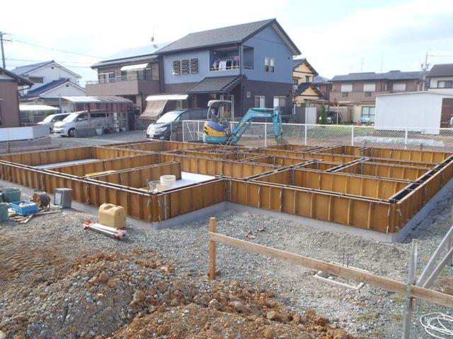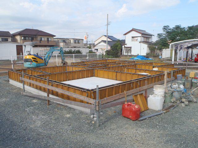 基礎工事(鉄筋組み、ベースコンクリート打ち、立上り型枠組み、
