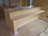 ・外部足場が解体され、建物外観がよく確認出来るようになり ました。外部給排水・エコキュート下地、浄化槽設置と外部工事を 進めていきます。 ・内部木工事、1階造作、幅木・廻し縁取付を終え,壁ボード 貼りと造作を進めています。