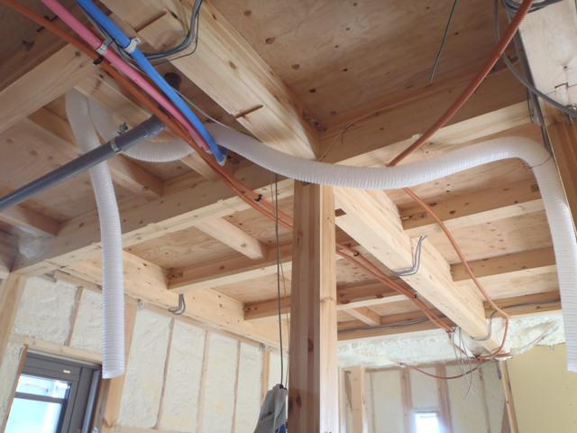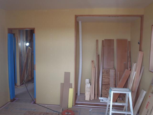☆先週の工事☆ 木工事(壁ボード貼り、開口枠下地、開口枠取付、 天井下地、他) 換気扇ダクト配管 ☆今週の予定工事☆ 木工事(床フローリング貼り、壁ボード・下地合板貼り、開口枠 下地、他)