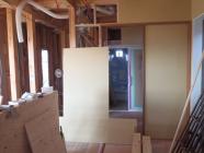 ・内部木工事、1階壁ボード・下地合板貼り、ドア開口枠