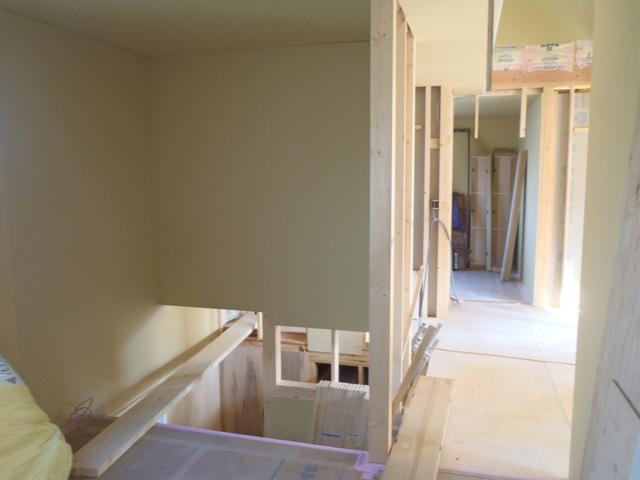 開口枠取付ながら壁ボード及び下地合板貼りと進み、各部屋