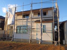 取付、外部足場解体、外部給排水埋設を行います。