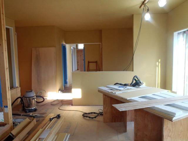 木工事(窓枠取付、壁ボード・下地合板貼り、ドア開口枠