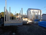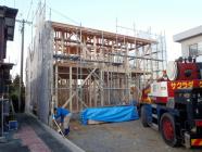 ・基礎工事、立上り部の型枠解体、基礎廻り埋め戻し整地、 玄関・ポーチタイルコンクリートを打ち終え、基礎工事完了しました。 ・上棟に向け、土台据え、床下地組み、構造材下地木材搬入と 上棟準備を進めいよいよ上棟を迎えます。 当日は、柱・梁組みと骨組みを組立て、屋根下地まで行い 建物高さ、間取り間隔が確認出来ます。