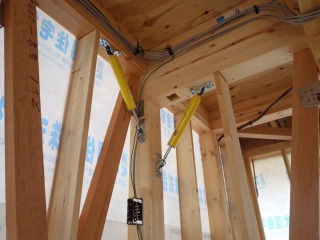 床フローリング下地を行い制振ダンパー取付・窓枠材が納品され