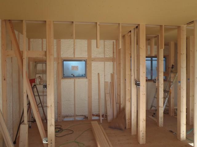 ・15日、吹き付け断熱(1階)施工します。2階同様、発泡ウレンタン