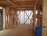 を行います。 吹き付け後、天井下地組み、内部造作へと進み