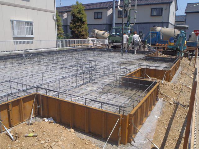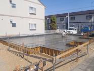 基礎工事(砕石地業、ベース型枠組み、鉄筋組み、ベースコンクリート