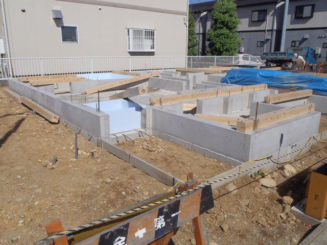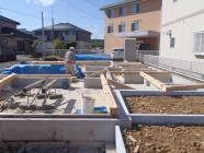 ☆先週の工事☆ 基礎工事(天端レベラー型枠解体、玄関・ポーチタイル下地 コンクリート、境界見切り壁、他) 上棟準備 ☆今週の予定工事☆ 基礎工事(境界壁型枠解体、片付け) 土台据え、1階床下地組み、上棟準備 先行足場組み 上棟