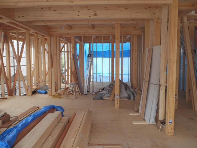 ・木工事、外部軒天(軒天部)下地組み及びボード貼りを進めたり
