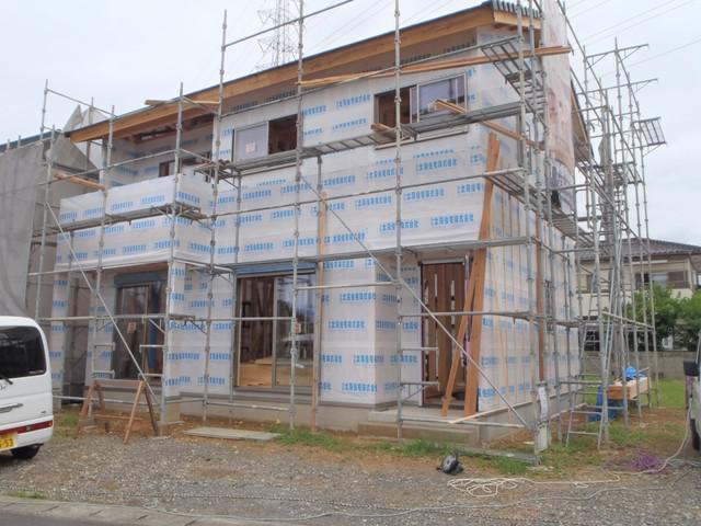・木工事、外壁下地材(胴縁)を打ち、1階床断熱材入れ、下地