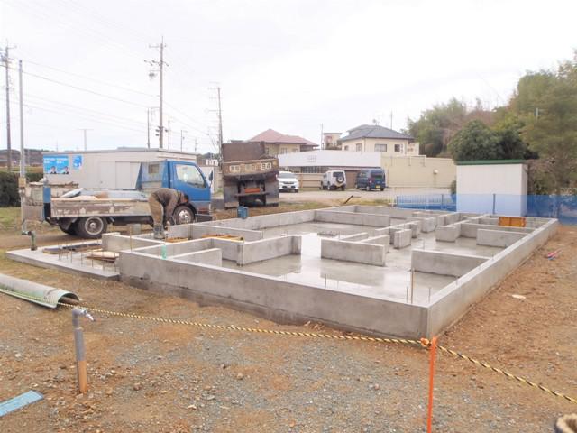 玄関・ポーチタイルコンクリートを打ち終え基礎工事完了となりました。