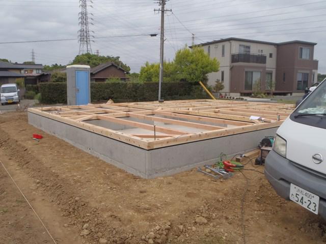 上棟に向け、土台据え、床下地組み、構造材・下地木材搬入と 上棟準備を行い、いよいよ上棟を迎えます。当日は柱・梁組と 骨組みを組み立て屋根下地まで予定しています。 建物高さ・間取り間隔など確認できます。