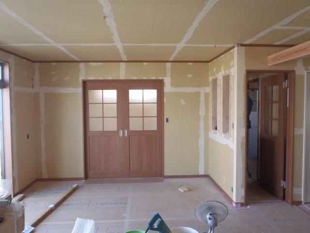 ☆先週の工事☆ 木工事(幅木・回し縁取付、建具吊り込み、他) 外部フード類取付 内装仕上げ(クロス下地) ☆今週の予定工事☆ 内装仕上げ(クロス下地) 外部足場解体 給排水・雨水配管 電力引き込みポール埋設管設置