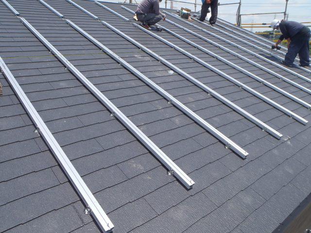 太陽光架台組み、パネル設置を行いました。板金工事、TV