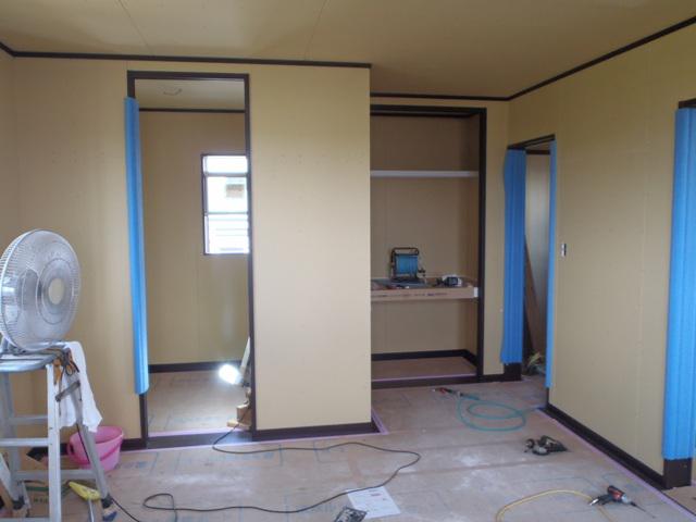 木工事(1階床フローリング貼り、壁ボード貼り、ドア開口枠取付、